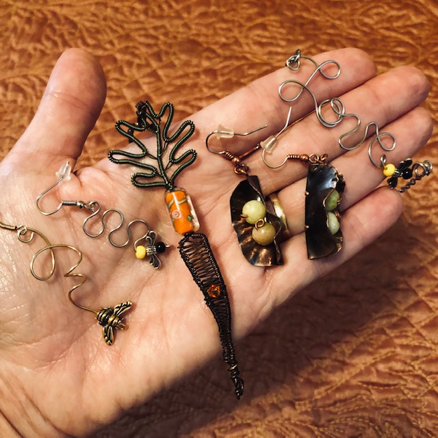 I attempt to get that message out by making what I call “reminder jewelry”… it reminds whomever wears it and whomever sees someone wearing it that there are many of us out here who support taking care of our pollinators, who support growing our own food when possible and who enjoy cultivating a deep connection to this one earth that we treasure so much and depend upon for our basic existence.